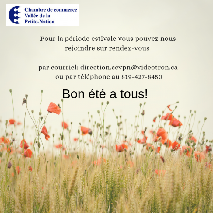 Veuillez prendre note: du 20 juillet au 4 août 2019 la Chambre de commerce sera fermée.